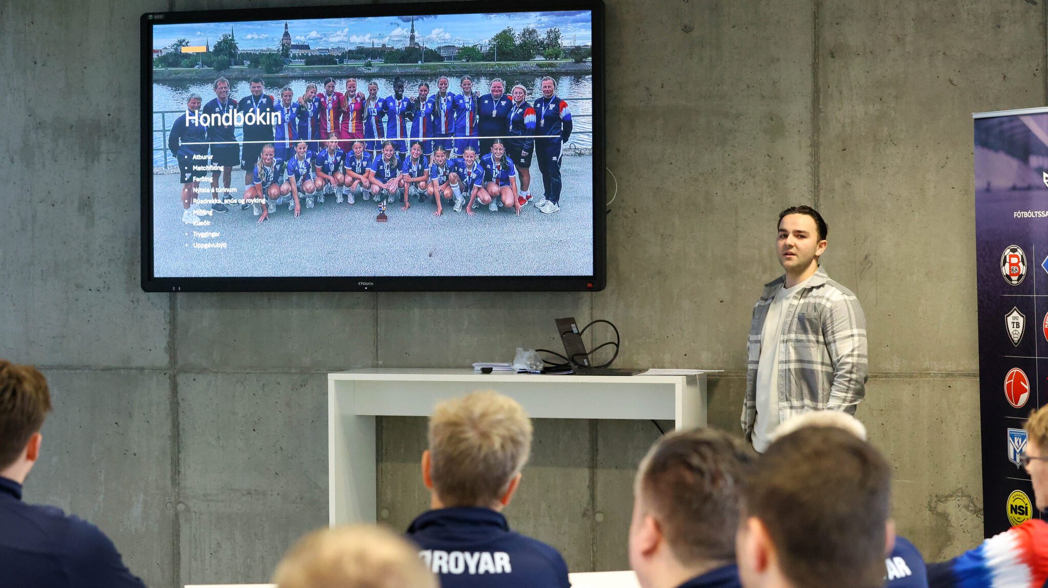 Landsliðsfyrisitararnir greiddu frá arbeiðinum, ið liggur fyri framman, áðrenn Signar Hilmarsson, verkætlanarleiðari hjá ÍSF fekk pallin.
